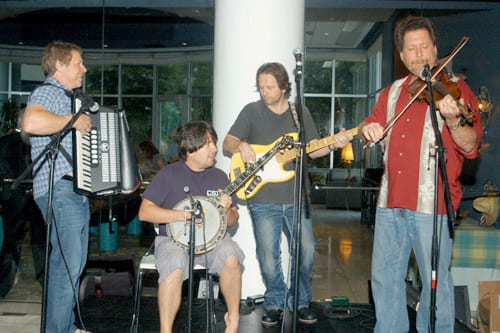 (L-R): MR's Jon Freeman and Sarah Skates, with musicians Shannon Forrest, Tony Harrell, Jonathan Yudkin, Jimmie Lee Sloas, Wes Hightower and Ilya Toshinsky.