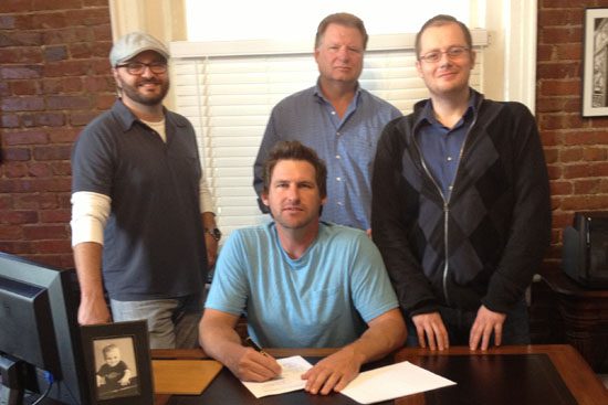 (L-R): Brad Kennard (Vice President, Full Circle Music), Cecil, Michael Hollandsworth (Owner, Full Circle Music), and Noah McPike (Almon Law, PLLC).