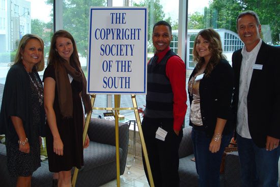 (L-R): Copyright Society of the South Board Member Amy Cranford, Tish Stewart from Belmont representing Morgan Swank, Caleb Kelly, Cassandra Lavoro (Award of Excellence Scholarship Recipients from MTSU) and Copyright Society of the South's Chairman of the Board John Barker. Photo: Bob Mather