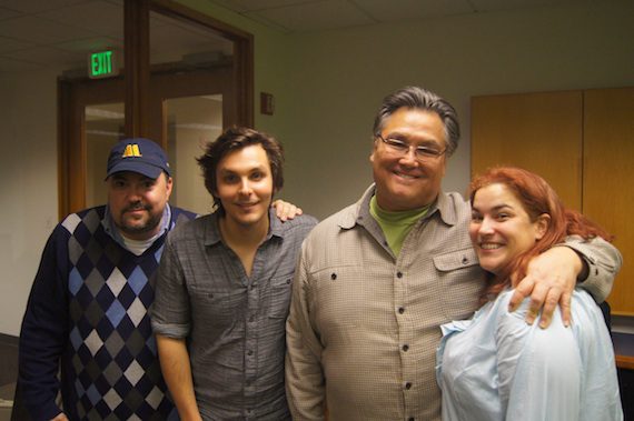Charlie Worsham made a stop to KMPS during a west coast radio tour. Pictured (L-R): Chris Palmer (W.A.R.), Charlie Worsham, Ed Hill and Raffaella Braun (W.A.R.)