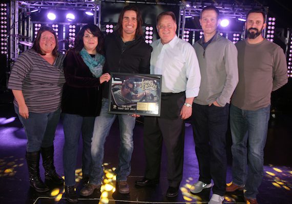 While gearing up to join Jason Aldean’s 2013 Night Train tour, RCA Nashville artist Jake Owen celebrated a Gold certification in the U.S. for his single “The One That Got Away.” Label executives and management surprised Jake with a plaque to commemorate the occasion in the midst of his tour rehearsal on Feb. 19 at Nashville’s Soundcheck.