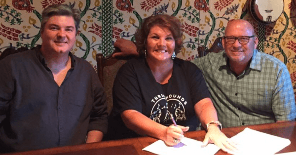 Pictured (L-R): Tyler Bell – GM Three Hounds Music, Sarah Beth Terry, Tom Harrison – CEO/Founder Three Hounds Music.