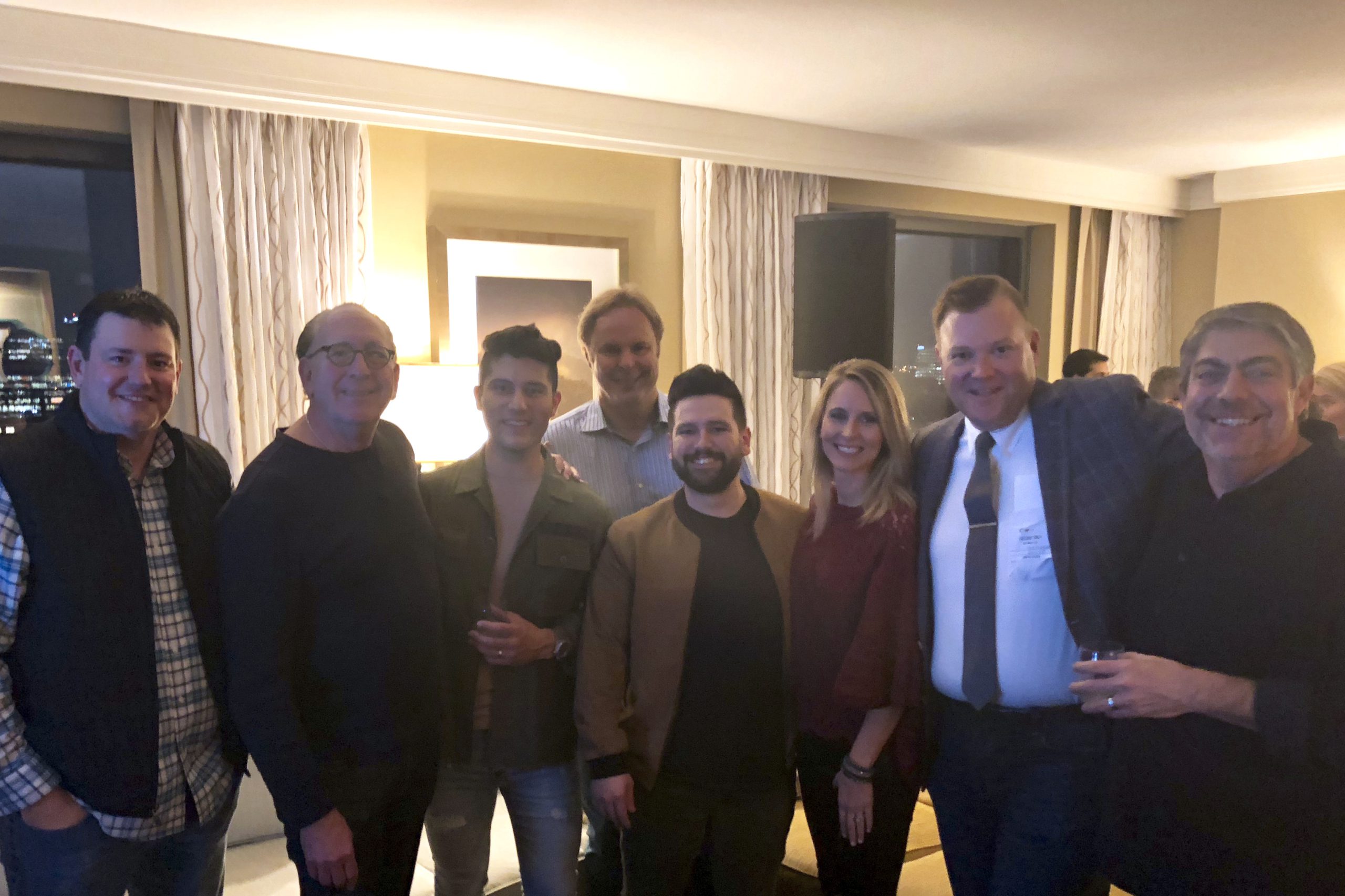 Pictured (L-R): Wookie (WDSY), John Esposito (Warner Music Nashville Chairman/CEO), Dan Smyers (Dan + Shay), Scott Hendricks (Warner Music Nashville EVP A&R), Shay Mooney (Dan + Shay), Kristen Williams (Warner Music Nashville SVP Radio & Streaming), Mark Anderson (WDSY), and Matt Signore (Warner Music Nashville COO). Photo: Courtesy of Warner Music Nashville