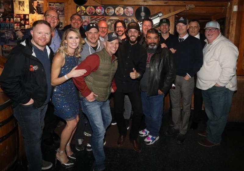 Pictured (L-R): Opie Joe (WCYQ); John Esposito (Warner Music Nashville); Kristen Williams (Warner Music Nashville); Matt Signore (Warner Music Nashville); Danny Montana (WIL); Doug Hamand (Cumulus); Jay Cruze (WBUL); Greg Frey (Cumulus); Chris Janson; (Tom Martens, Warner Music Nashville); Jojo Cerda (KTEX); Gator Harrison (WSIX); Rod Phillips (iHeartRadio); Chris O’Kelly (WKXC)