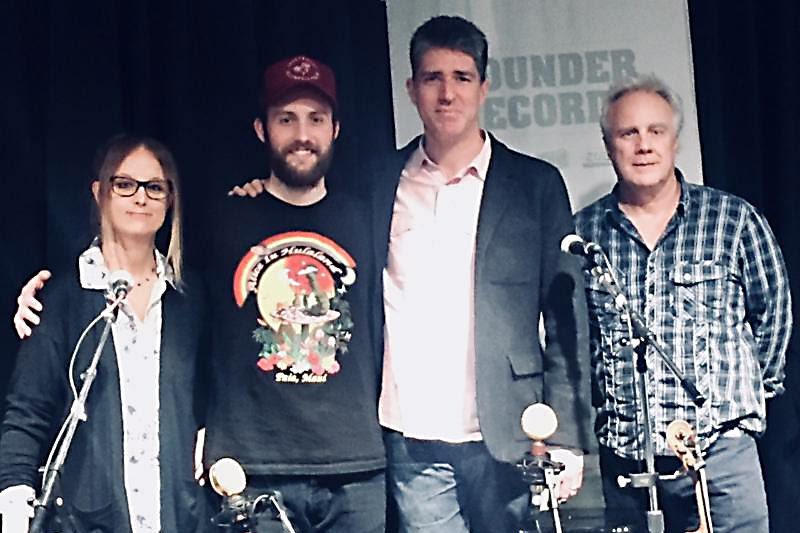 Pictured (L-R): Michelle Aquilato, VP of Marketing for Rounder Records; Ruston Kelly; John Strohm, President of Rounder Records; Gary Paczosa, VP of A&R for Rounder Records