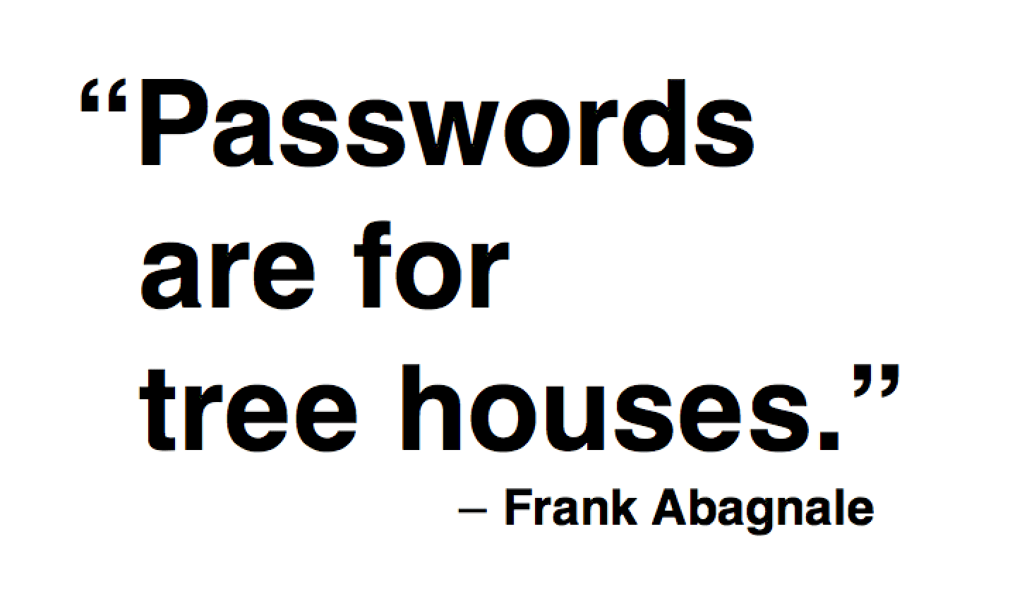 One of the most thought-provoking comments involved the use of passwords. “Passwords are for tree houses,” proclaimed Abagnale. He further explained that passwords were first used in the 1960s but yet remarkably, they still remain the main form of securing access, a technology that has long exceeded its useful life. He is currently working with Trusona, a company that will help eliminate the need for passwords.