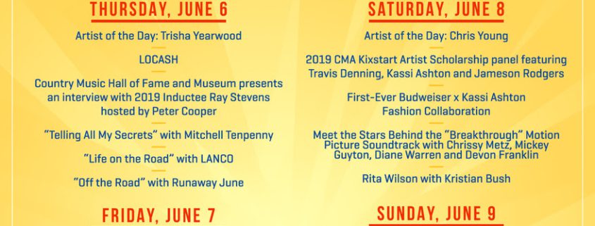 Additional programming for the CMA Close Up Stage includes: