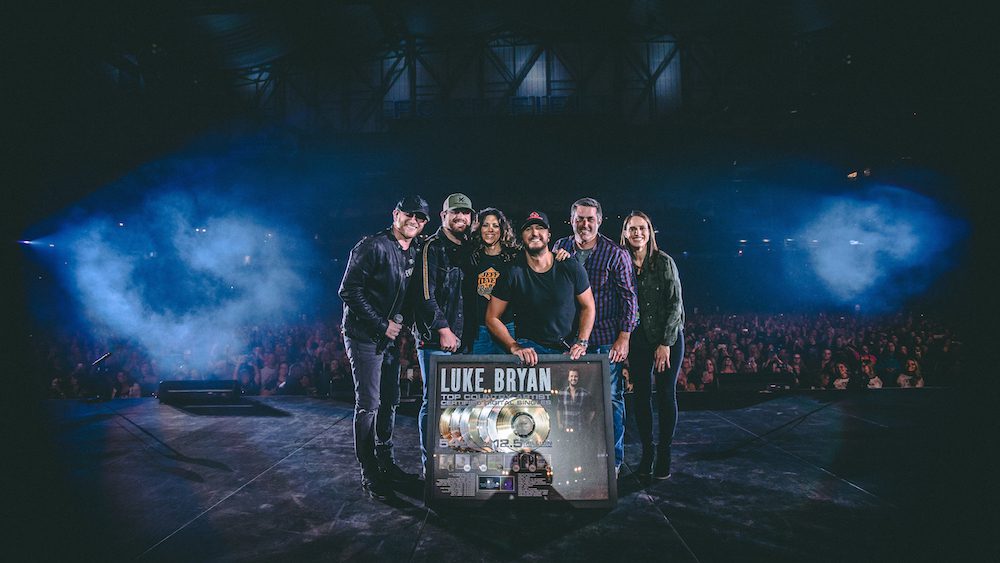 Luke Bryan recently played his 36th career stadium show at Ford Field in Detroit on Friday (Oct. 25), and was surprised with a plaque signifying that the country superstar has earned more RIAA certified digital singles than any artist in the country format, with 54 million digital singles, 12.5 million albums and seven billion streams.