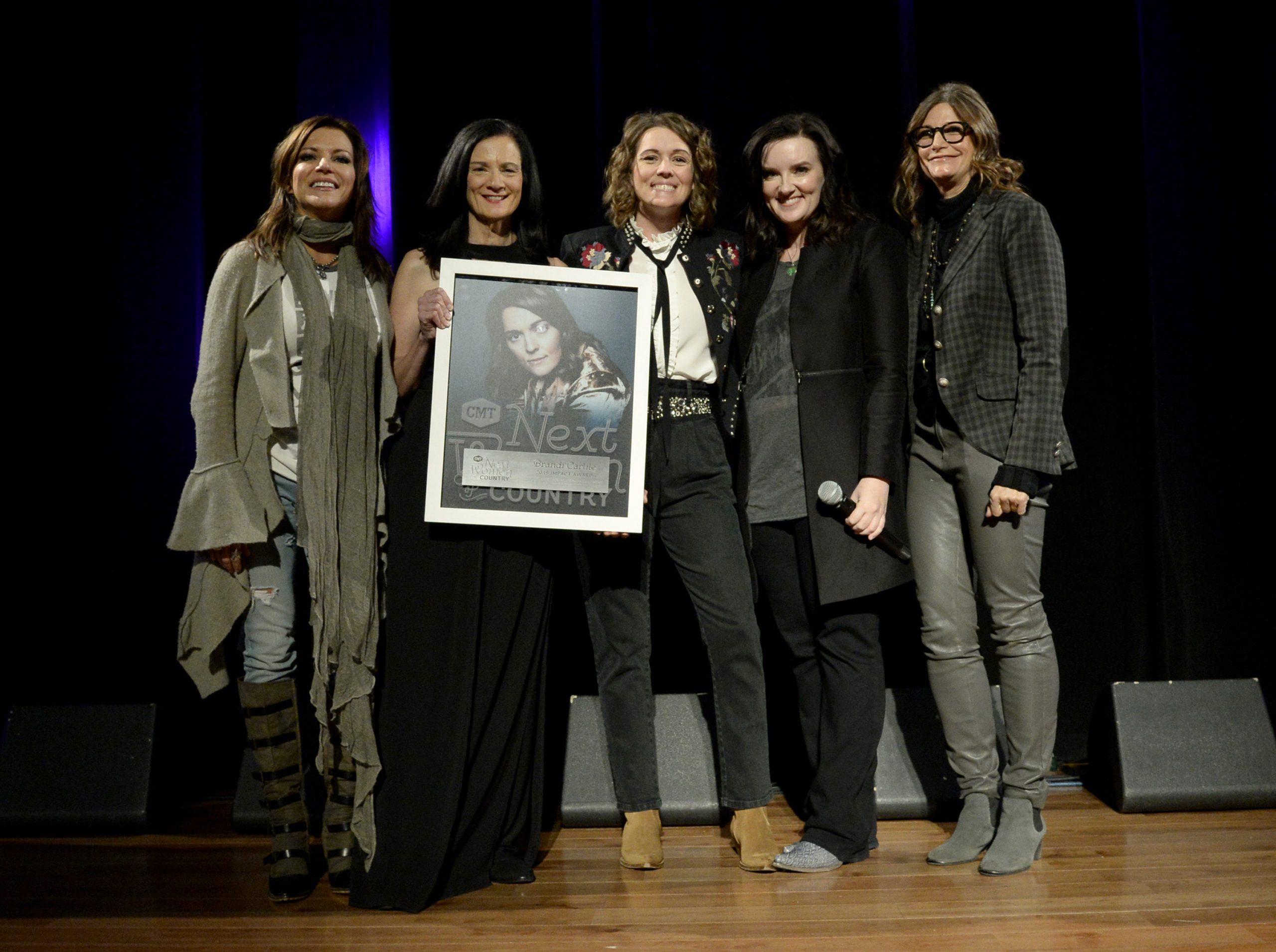 Brandi Carlile accepted the 2019 CMT Next Women of Country “Impact Award,” an honor presented to a female artist that has impacted songwriting, recording, radio airplay, record sales, streams, media impressions, awards and touring in country music over the past year. The award was presented by singer-songwriter Brandy Clark (Class of 2016) and Change the Conversation co-founder Tracy Gershon.