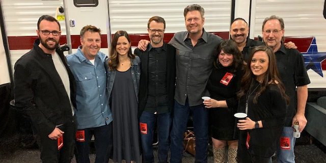 Warner Music Nashville execs recently visited Blake Shelton at The Voice on Tuesday, Nov. 19.
