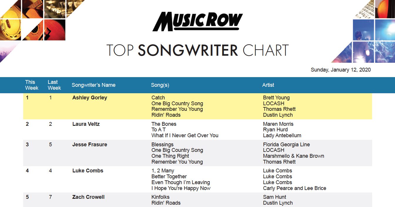 Ashley Gorley Kicks Off 2020 Atop The MusicRow Top Songwriter Chart