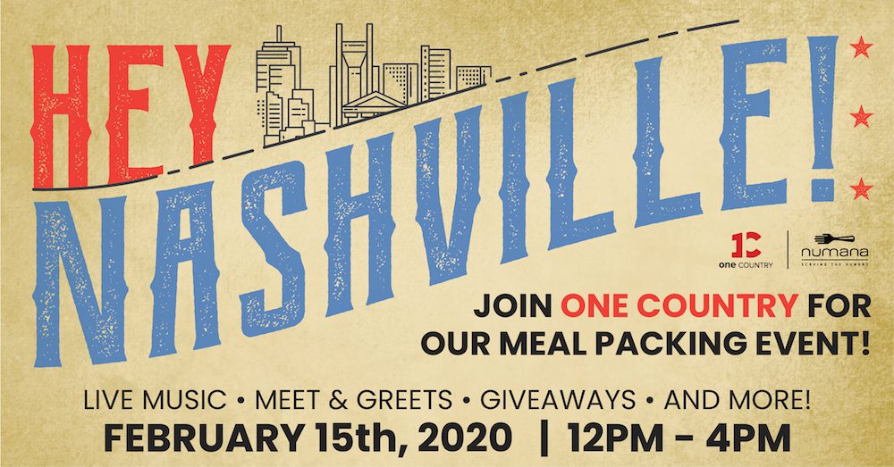 One Country has teamed with hunger relief non-profit Numana to host their first meal packing event in Nashville, on Feb. 15 at Cross Point Church (299 Cowan Street). The event aims to donate 250,000 meals to Nashville’s Second Harvest Food Bank.