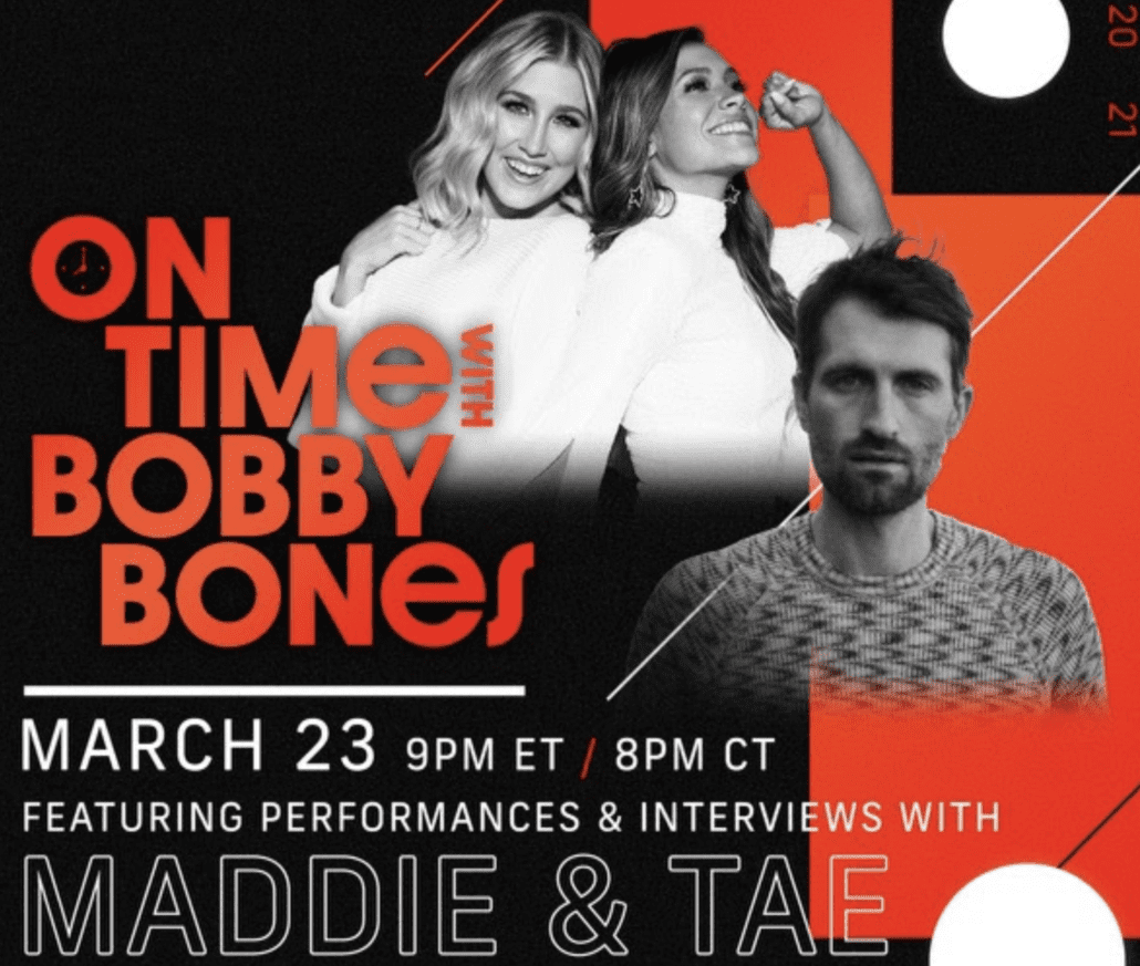 On Time With Bobby Bones will premiere today (March 23) at 8 p.m. CST and will include appearances from award-winning artists Maddie & Tae and Ryan Hurd, along with other special surprises and segments.