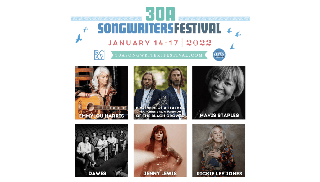 The 30A Songwriters Festival has announced its headliners for 2022 which will include Brothers of a Feather (Feat. Chris & Rich Robinson of the Black Crowes), Mavis Staples, Emmylou Harris, Dawes and Jenny Lewis.