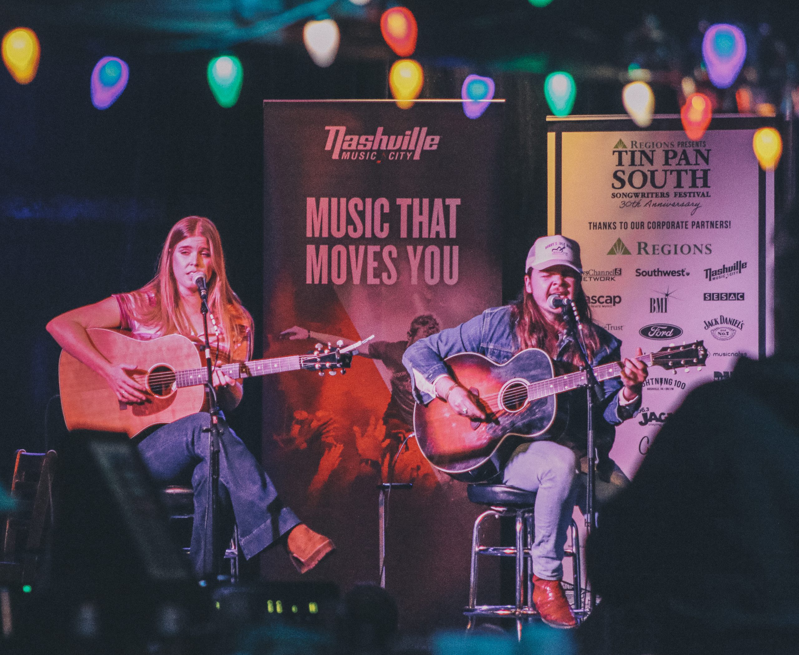 Pictured (L-R): Meg McCree and Ben Chapman perform at 3rd & Lindsley (stage sponsored by Visit Music City) during the early show. Photo: Tin Pan South/ Sydney Zuyus