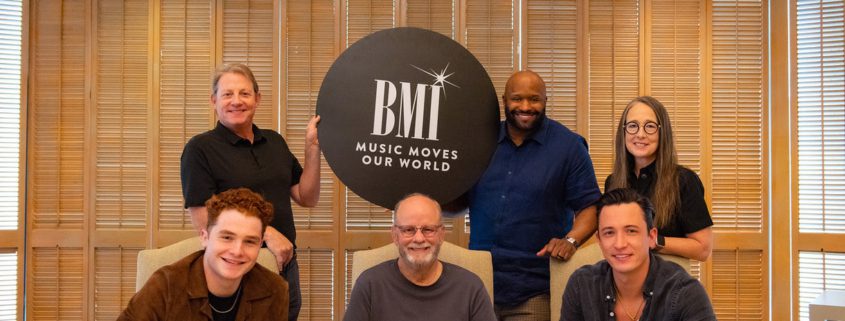 Pictured (L-R, front row): Luke Gage, Mark Bright, Garrett Adair. (L-R, back row): Clay Bradley (BMI), Shannon Sanders (BMI), Jennifer Rai. Photo: Shae Defty