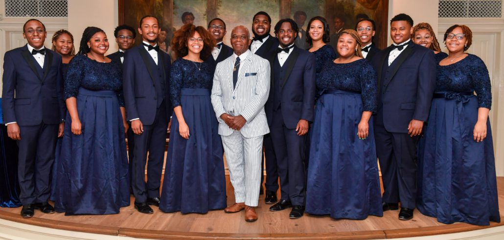 Dr. Paul T. Kwami (center) with The Fisk Jubilee Singers. Photo: Jason Davis, Getty Images for Fisk Jubilee Singers