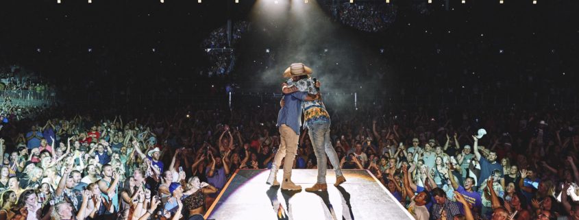 Florida Georgia Line’s Brian Kelley and Tyler Hubbard embrace at their last show as a duo. Photo: John Shearer