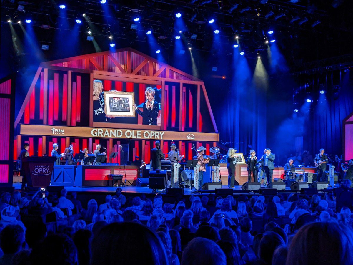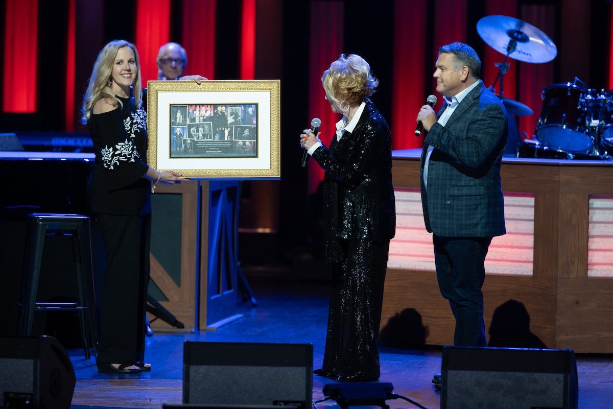 Opry executives Dan Rogers and Gina Keltner presented her with a commemorative plaque. “This lady is very, very special,” said Rogers. “She is beloved by the staff, her fellow artists and fans like you around the world.”
