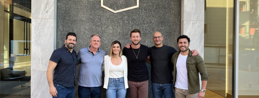 Pictured (L-R): Jeffrey Hasson (Co-Head of UTA Nashville), Scott Clayton (Partner & Co-Head of Global Music, UTA), Elisa Vazzana (Music Agent, UTA), Adam Doleac, Brett Saliba (Music Agent, UTA) and Eric Garcia (Manager, Light Cave Entertainment)
