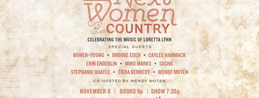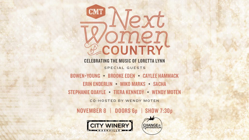 CMT and City Winery Nashville have unveiled the lineup for the final “Next Women of Country” showcase of the year. Set for Nov. 8, the evening will pay tribute to the legendary Loretta Lynn.