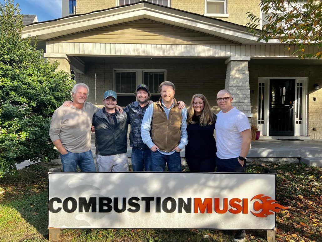 Pictured (L-R): Combustion President Chris Farren; Senior Creative Director, A&R Blake Duncan; Vice President Chris “Falcon” Van Belkom; Brett Tyler; Director of Operations Kelly Lyons; General Manager Keithan Melton. Photo: Combustion Music