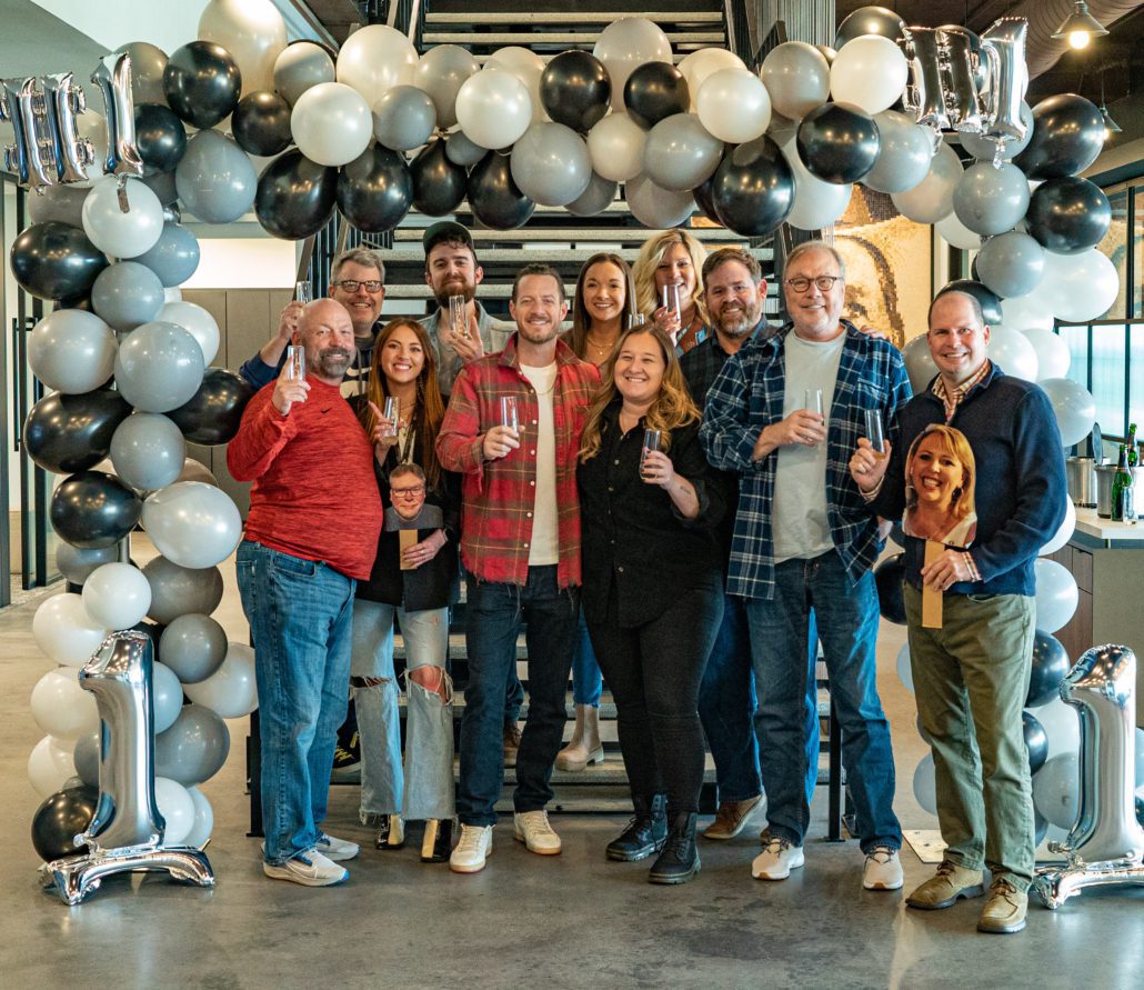 Pictured (L-R, back row): UMG Nashville’s (UMGN) David Friedman, UMGN’s Nick Kaper, EMI Nashville’s Briarman Whitfield, UMGN’s Donna Hughes, UMGN’s Royce Risser; (L-R, front row): EMI Nashville’s Jimmy Rector, EMI Nashville’s Heather Carpenter (holding a still of EMI’s John Trapane), Tyler Hubbard, EMI Nashville’s Jackie Stevens, UMGN’s Mike Dungan, EMI Nashville’s Mike Krinik (holding a still photo of EMI’s Trudie Daniell).