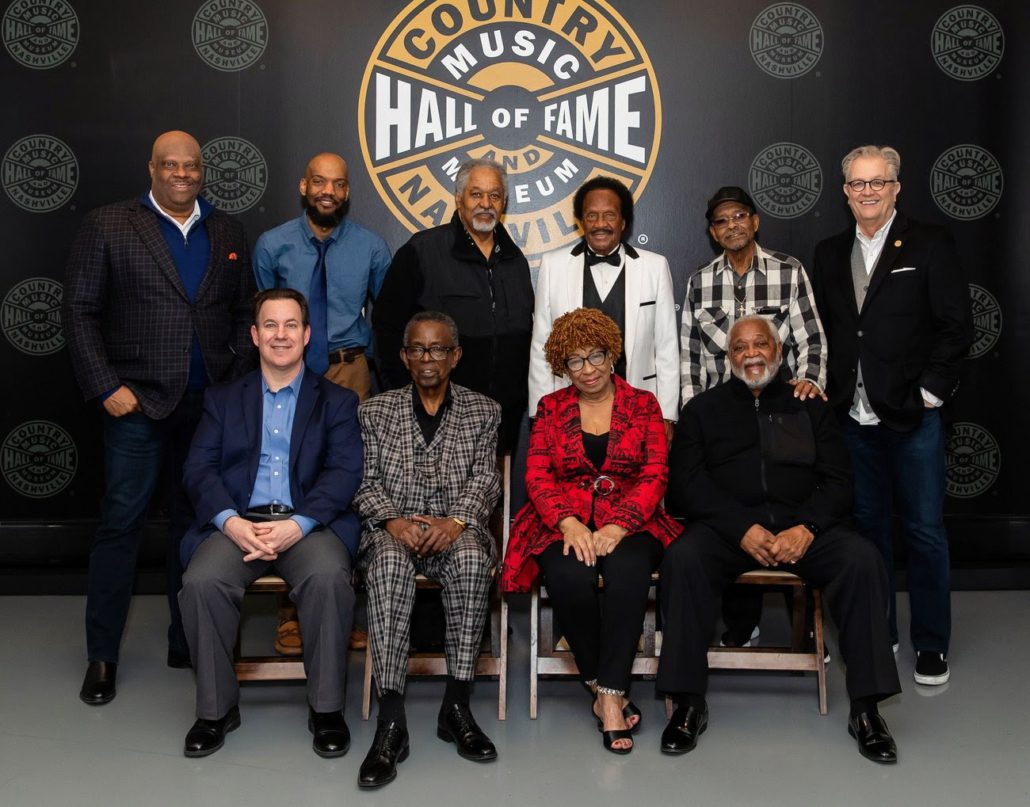 Pictured (L-R, back row): NMAAM President and CEO H. Beecher Hicks III, NMAAM Curator Dr. Bryan Pierce, James Moon, Jimmy Church, Levert Allison and Country Music Hall of Fame and Museum CEO Kyle Young; (L-R, front row): Country Music Hall of Fame and Museum Vice President of Museum Services Michael Gray, Charles “Wigg” Walker, Peggy Gaines Walker and Frank Howard. Photo: Courtesy of the Country Music Hall of Fame and Museum