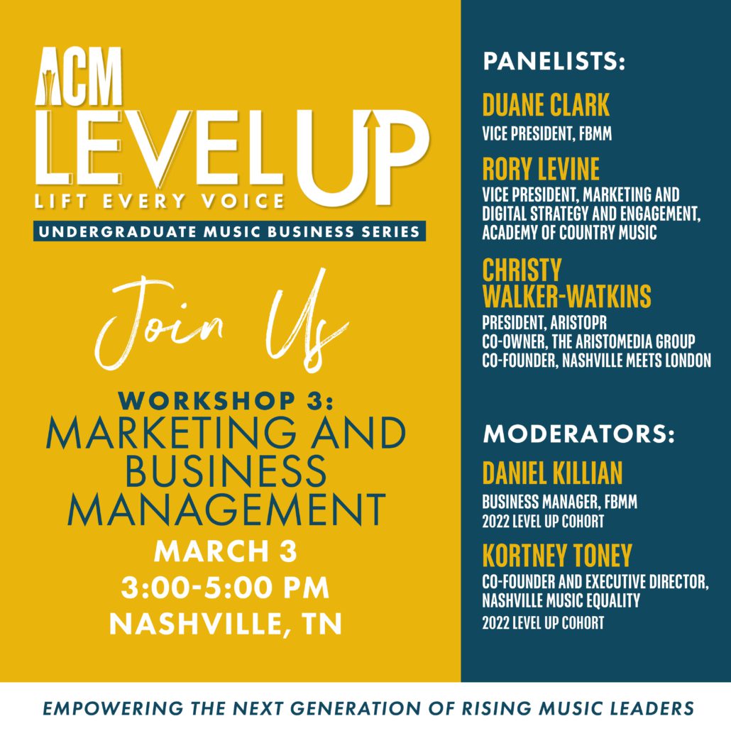 The Academy of Country Music’s LEVel Up: Lift Every Voice program has announced the third workshop in their series for undergraduate students interested in careers in the music industry.