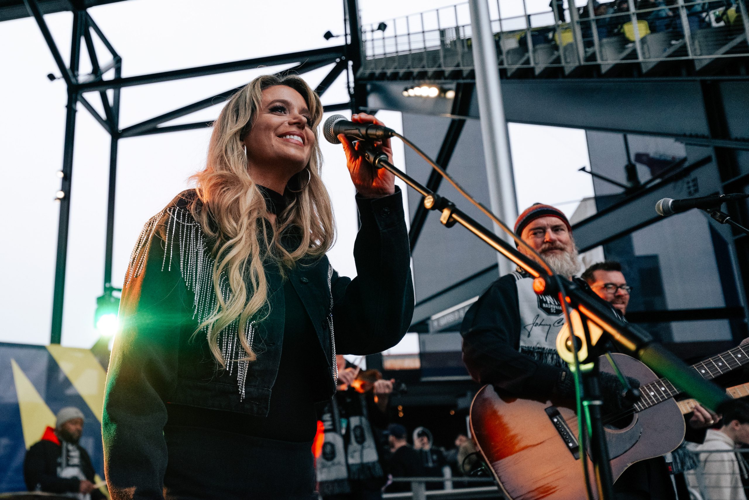 In front of a near sold-out crowd on the eve of Johnny Cash’s 91st birthday, John Carter performed the Nashville SC Guitar Riff to kick off the match, which was then followed by a touching halftime performance tribute alongside Ana Cristina, which included a medley of Johnny Cash hits including “I Walk The Line” and “Ring of Fire.”