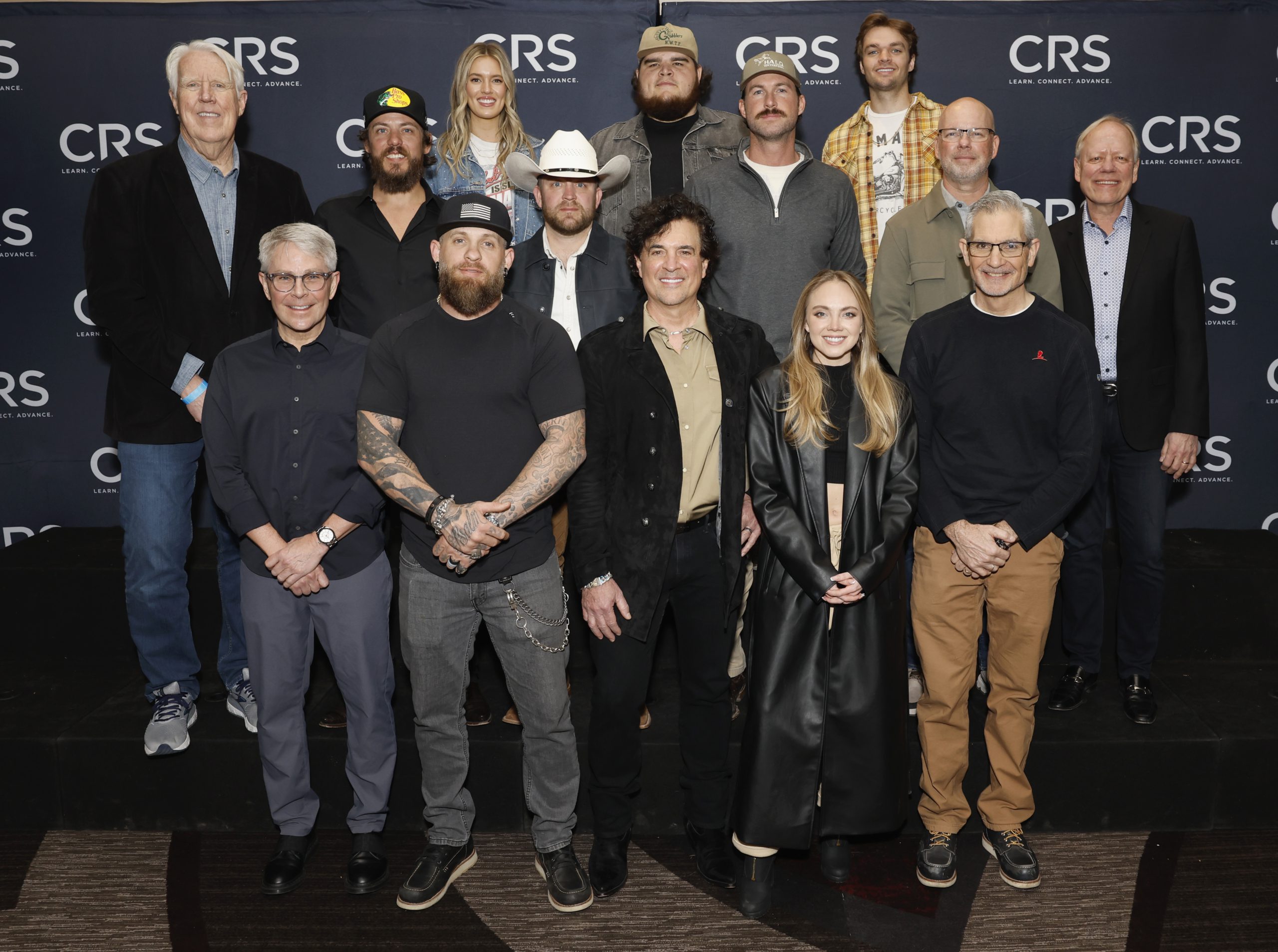 Pictured (L-R, back row): Mackenzie Carpenter, Shane Profitt and Conner Smith; (L-R, middle row): The Valory Music Co.’s George Briner, Chris Janson, Justin Moore, Riley Green, Big Machine Records’ Clay Hunnicutt and CRB’s Kurt Johnson; (L-R, front row): BMLG Records’ Jimmy Harnen, Brantley Gilbert, Big Machine Label Group’s Scott Borchetta, Danielle Bradbery and CRB’s RJ Curtis. Photo: CRB/CRS/Kayla Schoen