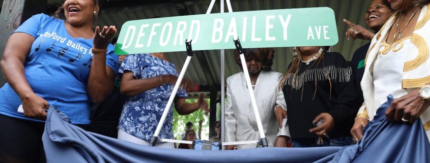 The new street name was officially unveiled on May 20 in a public ceremony, immediately followed by a free outdoor concert. The dedication and celebration was held at the north end of the William Edmondson Homesite Park, which borders on Horton Avenue, and featured country and R&B performances by two of Bailey’s grandsons, Carlos DeFord Bailey and Herchel Bailey, along with guest artist Smokin’ Otis.