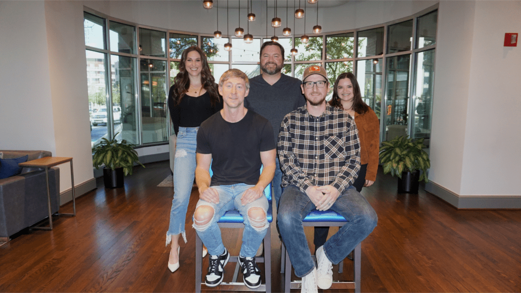 Pictured (L-R, back row): Tape Room’s Kelly Bolton, Blain Rhodes and Caroline Hodson; (L-R, front row): Ashley Gorley and Andy Sheridan. Photo: Courtesy of Tape Room Music