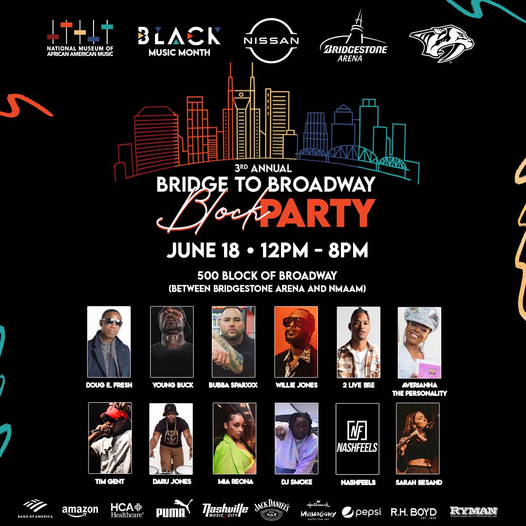 The National Museum of African American Music is celebrating Black Music Month and Juneteenth with a “Bridge To Broadway Block Party” on Lower Broadway in Nashville on June 18 from noon-8 p.m.
