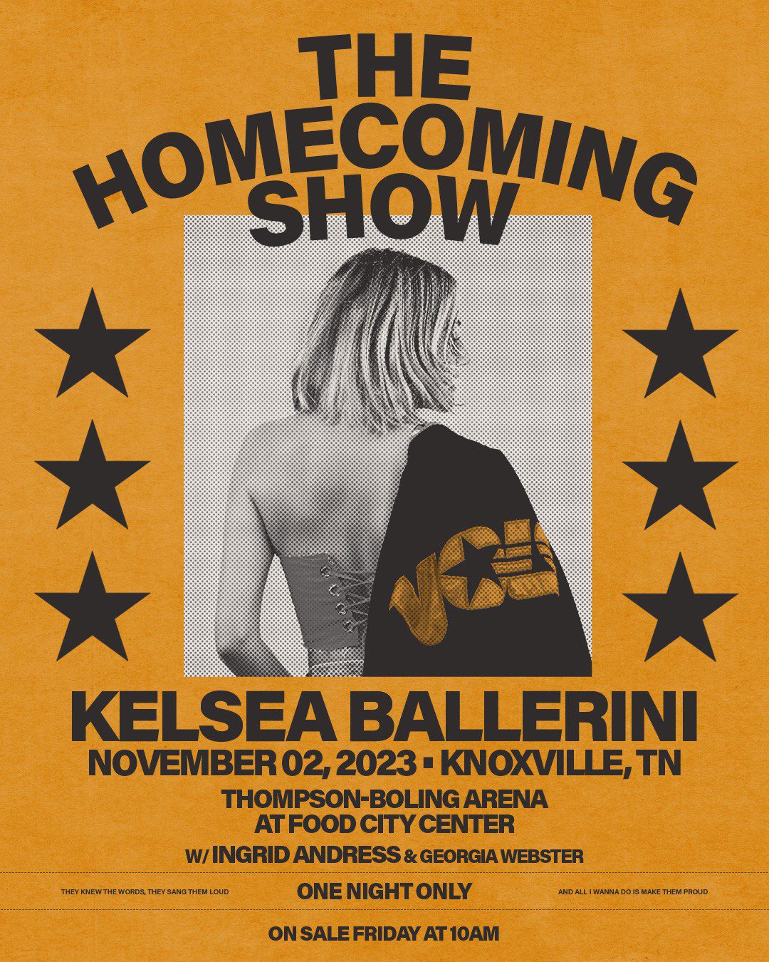 Kelsea Ballerini is heading back home to East Tennessee for a one-night-only concert, “The Homecoming Show,” on Nov. 2 at Thompson-Boling Arena in Knoxville.