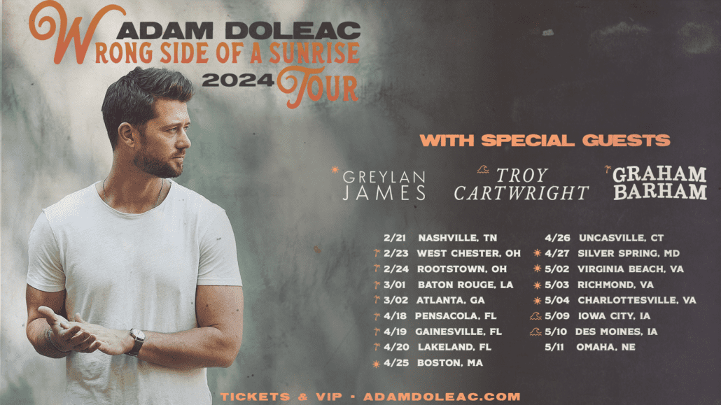 Adam Doleac will head out on the road for his headlining “Wrong Side Of A Sunrise 2024 Tour.”