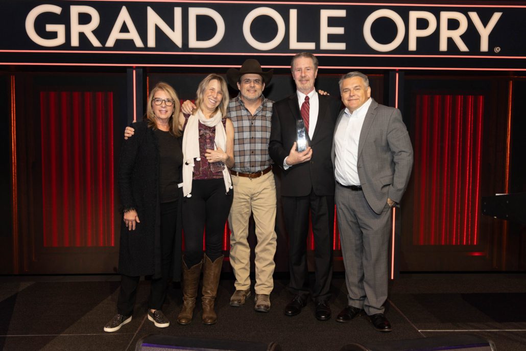 Pictured (L-R): Nan Kingsley, Erika Wollam Nichols, Rhett Akins, Bart Herbison and Dan Rogers. Photo: Chris Hollo for Grand Ole Opry
