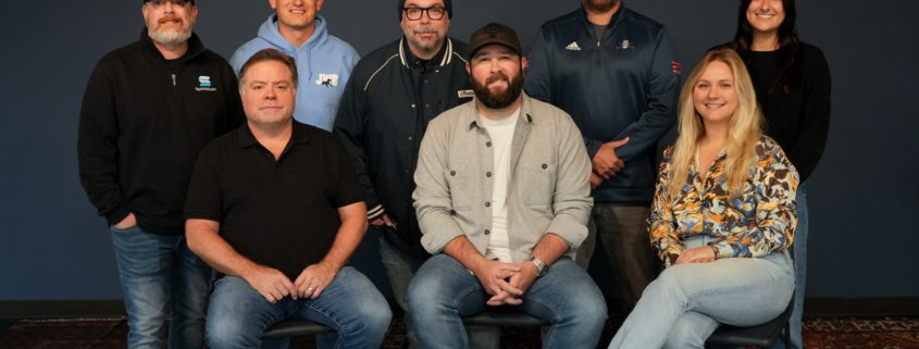 Pictured (L-R, back row): AJ Burton, Vice President, Spirit Music Nashville/Fluid Music Revolution; Andy Hodges, Creative Coordinator, Spirit Music Nashville; Mike Fiorentino, Director of A&R/Production, Spirit Music Nashville; Matt Cottingham, Lewis Brisbois; and Kennedy Murphy, Creative Coordinator, Spirit Music Nashville; (L-R, front row): Frank Rogers, Chief Creative Officer, Spirit Music Group/Chief Executive Officer, Spirit Music Nashville; Brinley Addington; and Kara Jackson, Senior Creative Director, Spirit Music Nashville. Photo: Courtesy of Spirit Music Group