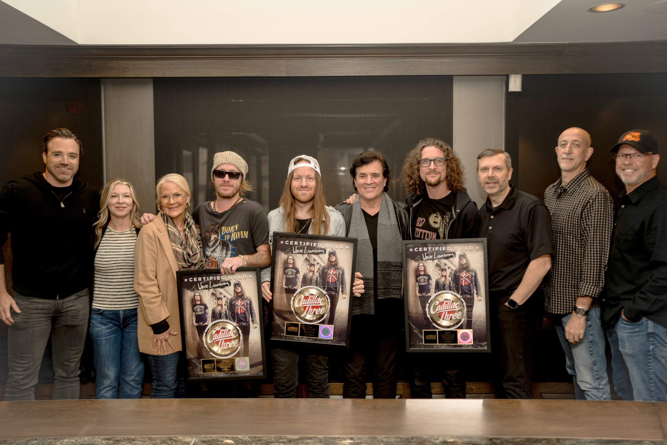 The Cadillac Three recently celebrated the Gold certification of their hit single “White Lightning” alongside their team at Big Machine Records.