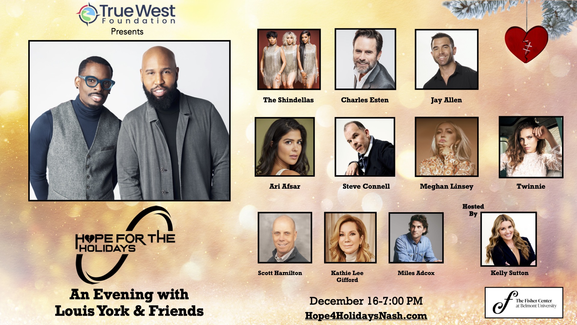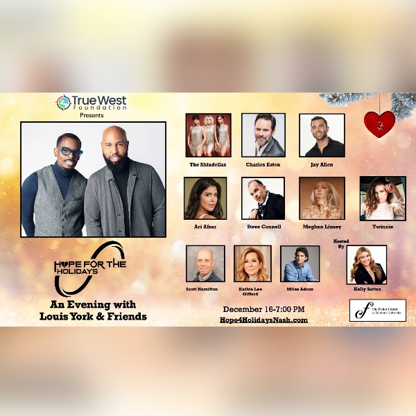 “Hope For The Holidays: An Evening With Louis York & Friends” is sponsored by First Bank, The Inspire Foundation and Aetna, and will benefit Nashville Peacemakers, Alzheimer’s Association, The Onsite Foundation and Scott Hamilton Cares Foundation.