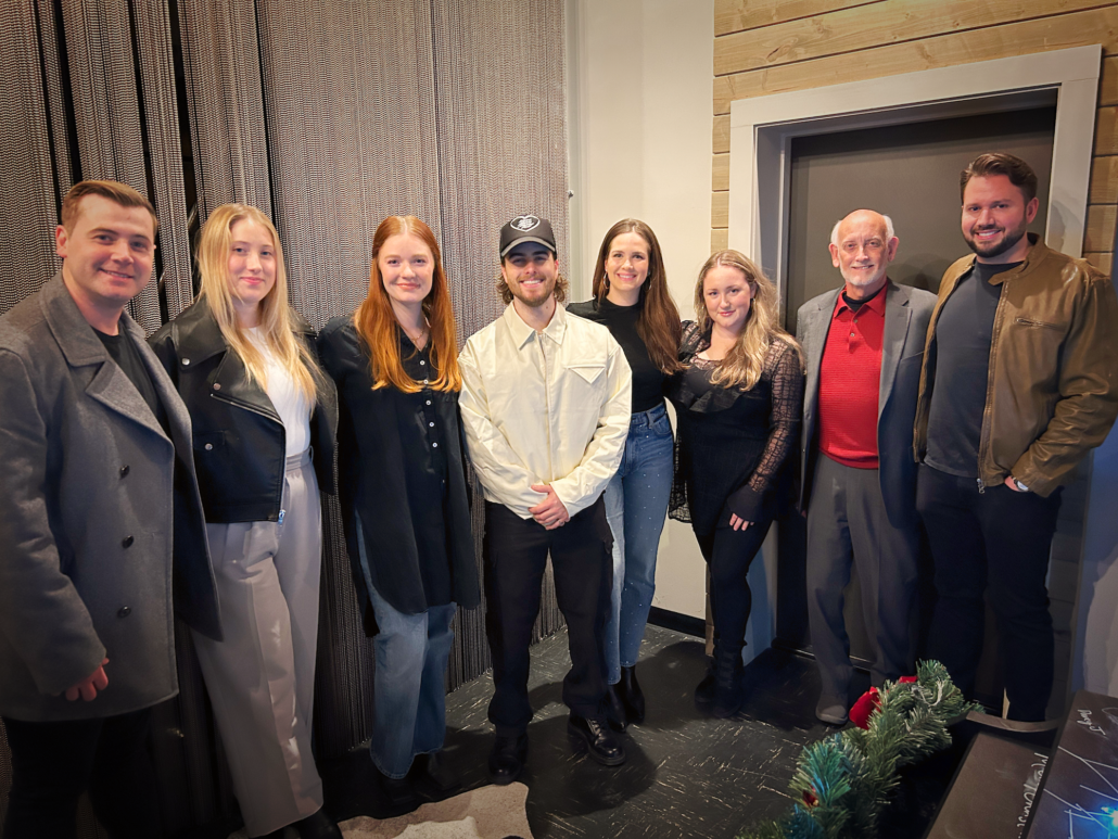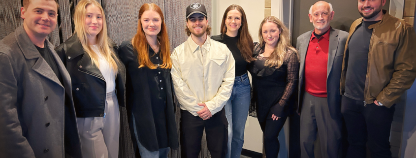 Pictured (L-R): Jimmy Robbins (Mailbox Money Music), Allie Nicolini (LBK Entertainment), Mariah Tobias (LBK Entertainment), Dawson Anderson, Sarah Robbins (Mailbox Money Music), Sophie Moll Ziegler (Mailbox Money Music), Carl Kornmeyer (LBK Entertainment), Matt Musacchio (Champ Management)