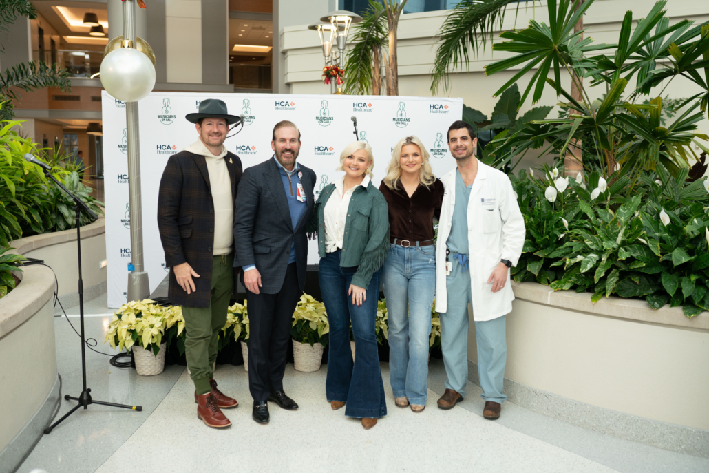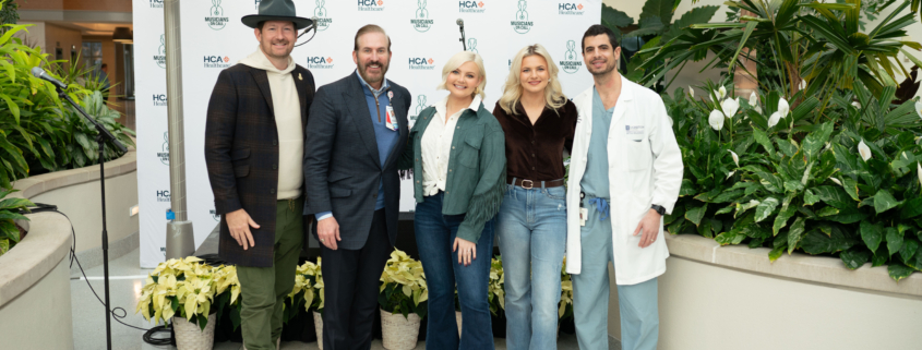 Pictured (L-R): Musicians On Call’s Pete Griffin, TriStar Centennial Medical Center’s Tom Ozburn, Tigirlily Gold and Musicians On Call’s Dr. Todd Rubin