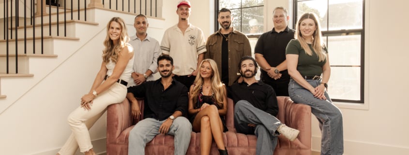 Pictured (L-R, top row): Martha Earls (Owner, Neon Coast), Bryan Bernstein (A&R, broke) , Nathaniel Kosko (Marketing Director, broke), Armin Sadeghzadeh (Operations Director, broke), Tiger Greene (Tour Manager) and Jess Tomlins (Management, Neon Coast). (L-R, bottom row): Brandon De Oliveira (Founder, COO, broke), Julia Cole and Andre Benz (Founder, CEO, broke).