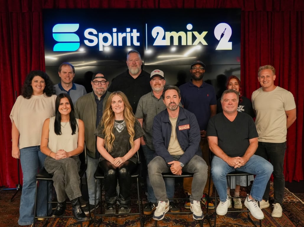 Pictured (L-R, front row): Kennedy Murphy (Spirit Music Nashville); Kasey Tyndall; Derek Wells (Spirit Music Nashville/2Mix); and Frank Rogers (Spirit Music Group Spirit Music Nashville). (L-R, back row): Lindsey Ray (Steadfast Co); Will Cooper (Spirit Music Nashville); Mike Fiorentino (Spirit Music Nashville); Brian Bradford (Spirit Music Nashville); AJ Burton (Fluid Music Revolution/Spirit Music Nashville); Ryan Johnson (Spirit Music); Jasmine Pettus (Spirit Music Nashville) and Andy Hodges (Spirit Music Nashville).