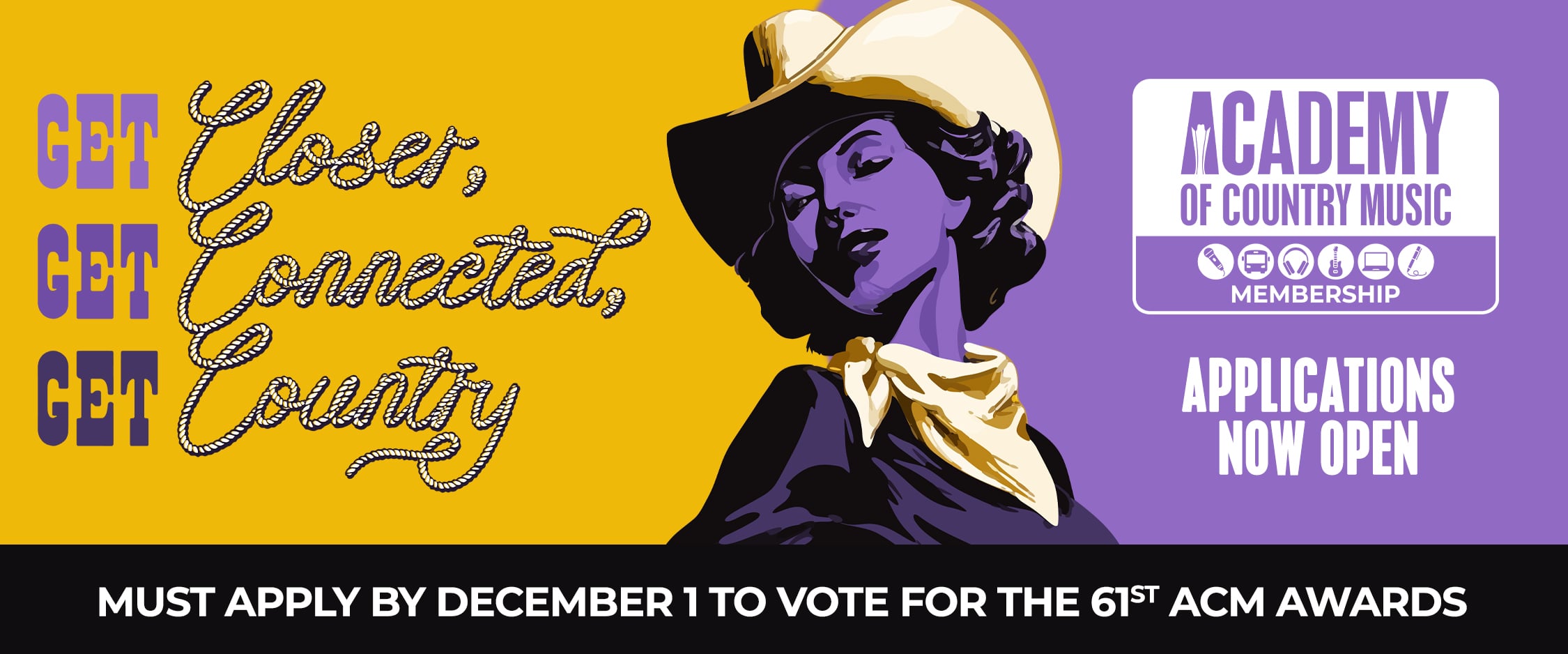 The Academy of Country Music has opened applications for new members and renewals. New this year, membership applications and renewals will remain open year-round. To maintain voting eligibility for the 61st Academy of Country Music Awards, you must apply by Dec. 1, 2025.