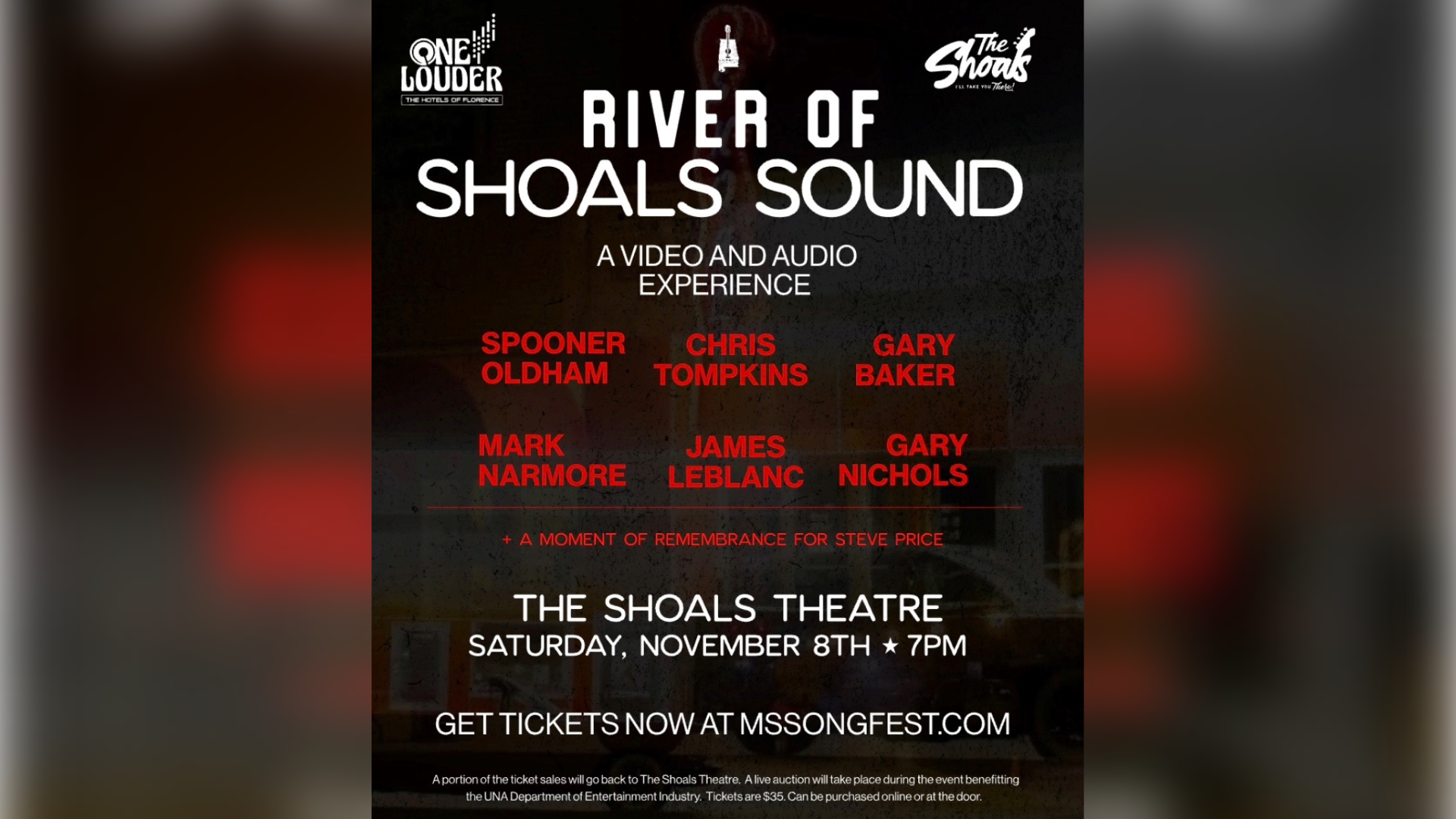 The “River of Shoals Sound” showcase is set for Nov. 8 at the historic Shoals Theatre, featuring Spooner Oldham, Chris Tompkins, Mark Narmore, Gary Baker, James LeBlanc and Gary Nichols, and features a blend of video and live performances, taking audiences on a journey through time to celebrate the legacy of Shoals songwriters.