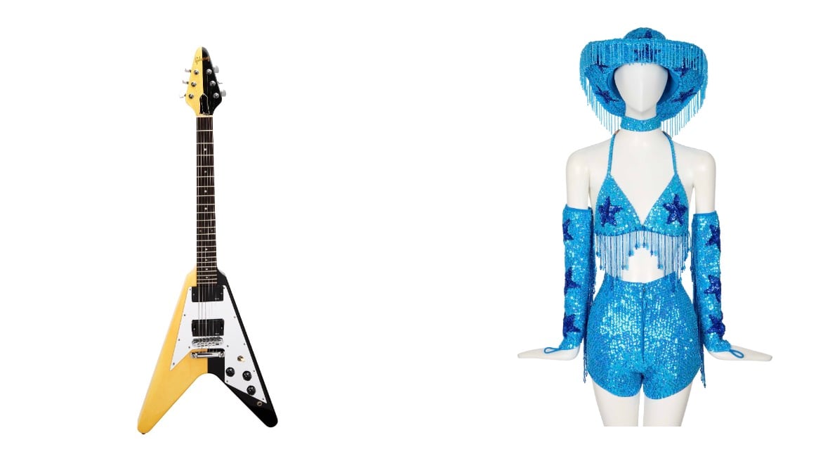 Pictured: (L) Kirk Hammett 1985 Gibson Custom Michael Schenker Flying V; (R) Chappell Roan 2024 “Guts” World Tour Stage-Worn Costume