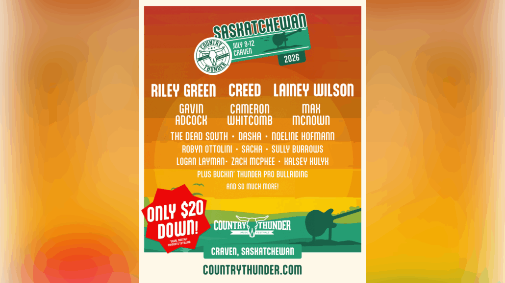 “We’re thrilled to bring this level of talent back to Saskatchewan,” says Troy Vollhoffer, CEO, Country Thunder. “Country Thunder is all about creating an unforgettable weekend filled with high-energy performances, memorable moments and the unique atmosphere that only Craven Valley can provide. We’re thrilled to add an additional value to ticket holders with our brand-new bull riding event. We can’t wait to see the fans back in the valley, making the most of every minute.”