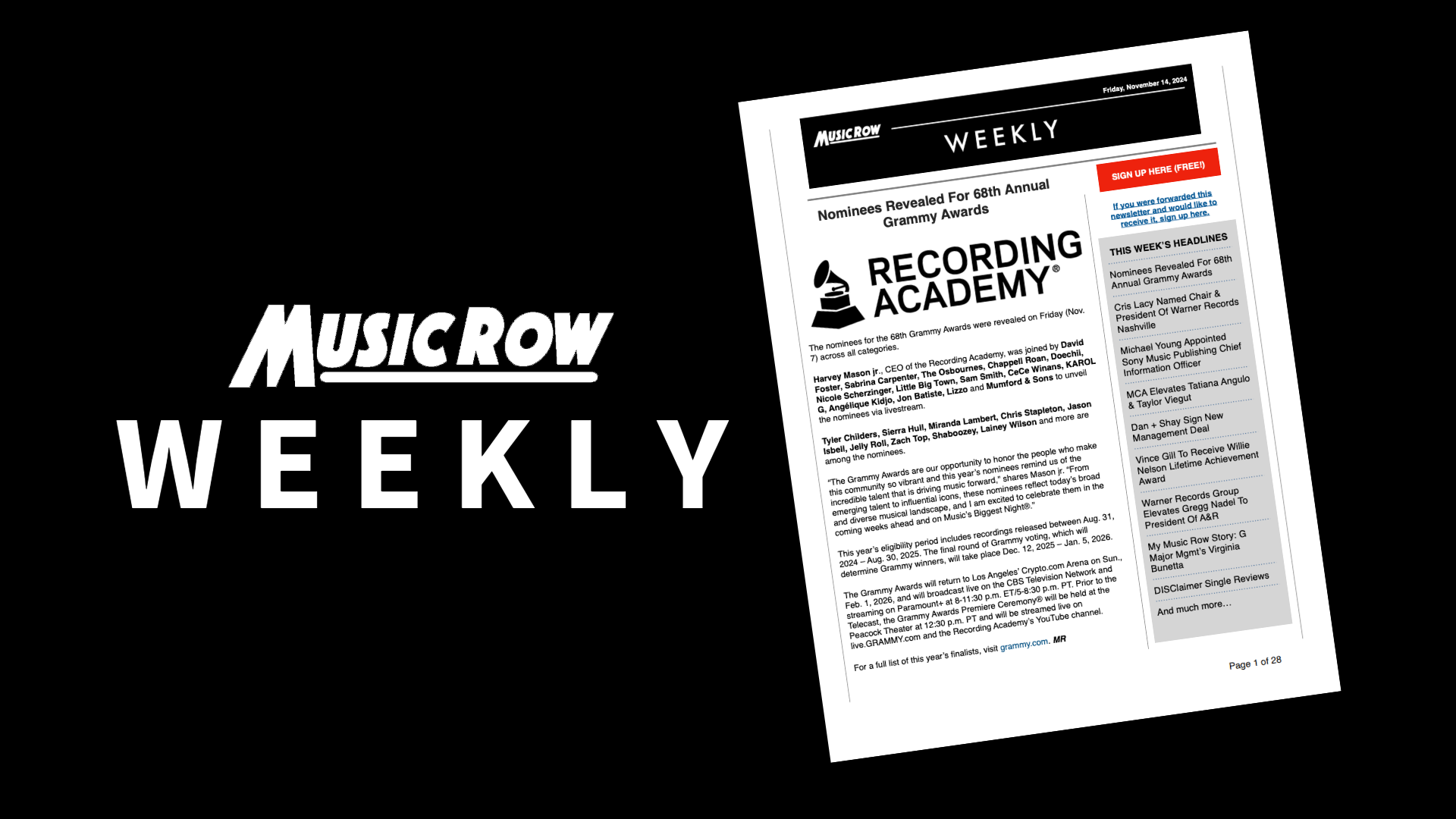 The MusicRow Weekly is delivered every Friday, featuring Nashville’s top music industry news, exclusive interviews, song reviews, radio and songwriter charts and more. Sign up for free here.
