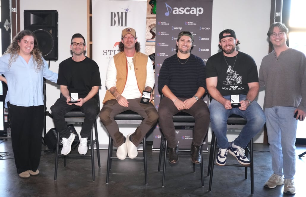 Pictured: MusicRow’s LB Cantrell, David Garcia, Tyler Hubbard, Jordan Schmidt, Geoff Warburton, MusicRow’s John Nix Arledge; Photo Credit Larry McCormack for BMI